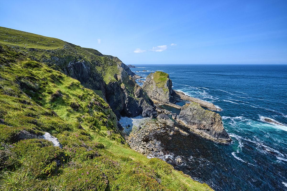 As the name suggests, in the centre of the bay, there is a pier, which is in surprisingly good condition and still in active use. If you are looking for outstanding photo opportunities, you can head in two different directions. When making your decision, you should take the sun’s position into account. If you climb up the hill to the right, you can take photos towards the west and admire some bizarre rock formations off the coast and a beautiful view of the pier. In the other direction, a hiking trail leads along some spectacular cliffs and on through the hills to Glencolumbkille. Here you can photograph towards the north/north-east and get a prime example of Donegal’s rocky coastline in front of your lens.