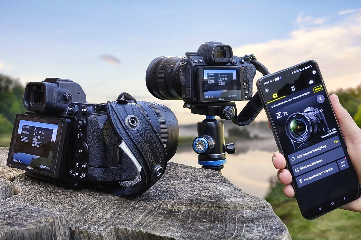 Nikon’s SnapBridge app allows you to embed the location data from a connected smartphone’s GPS into your photos – even with two cameras simultaneously. I have been using this feature for quite some time, even though it is not documented in Nikon’s official online manual.